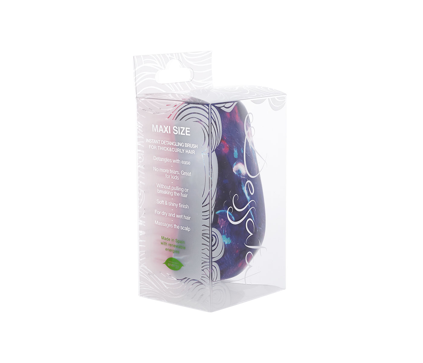 Tamaño MAXI (dimensiones: 12 x 7,4 x 6,1 cm). Cepillo para pelo rizado, fino, grueso, seco o quebradizo