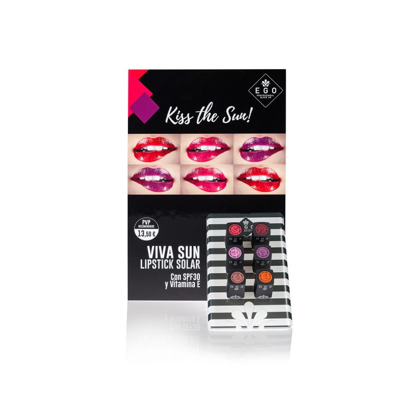 EGO EXPOSITOR LABIALES VIVA SUN 6 TONOS X 3 Expositor PROFESIONAL con 18 barras de labios VIVA SUN (6 colores x 3ud). Se obsequia EXPOSITOR + 6 tester. VIVA SUN es un labial cremoso y ligero, con una textura hidratante que se funde creando un color luminoso y brillante.
