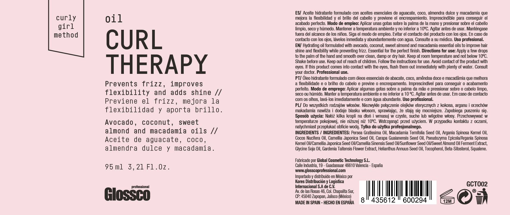 La almendra dulce es rica en calcio, omega 6, ácidos grasos y vitamina E, la almendra dulce proporciona hidratación al cabello, dejando el cabello más fuerte y flexible. Curl Therapy oil puede solidificarse a bajas temperaturas por su alta concentración de aceites naturales. Aplicando un poco de calor, vuelve a su aspecto natural.