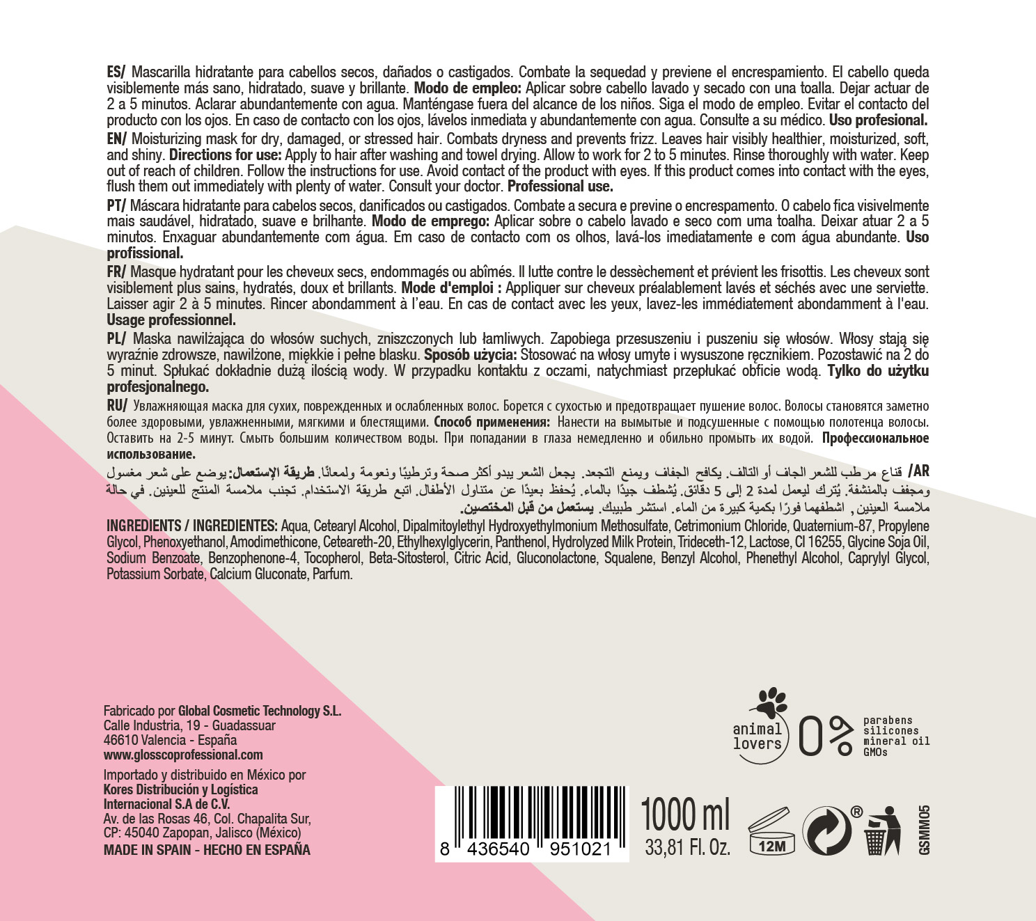 ¿Por qué comprar GLOSSCO MASCARILLA SMOOTHIE NATA Y FRESA 1000 ML?