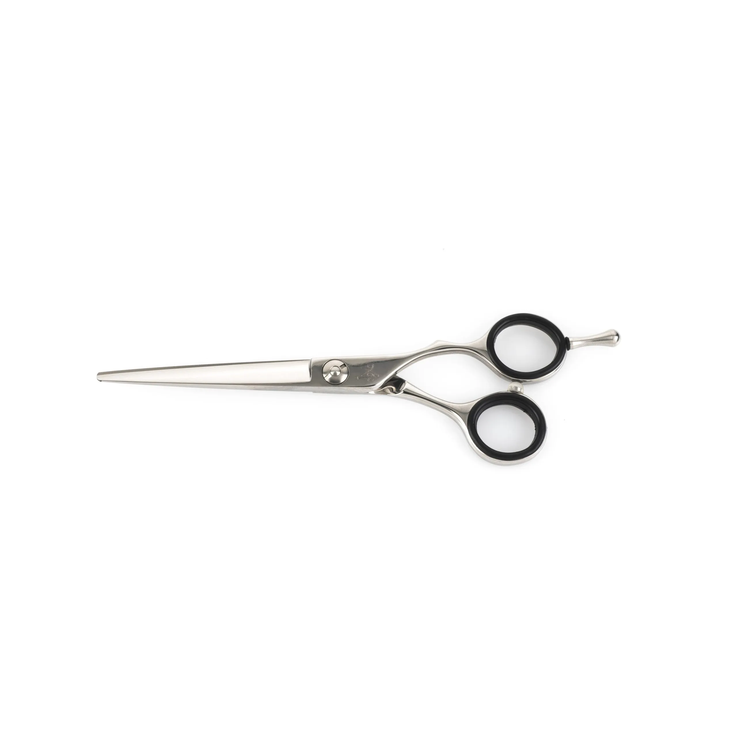 Tijera Profesional de Peluquería modelo Bolonia de diseño ergonómico sistema offset. Tornillo Vaioplis especial patentado. Acabado pulido brillo espejo. Filo súper agudo efilador. Acero japonés 440C.