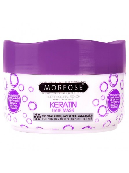 La mascarilla de Keratina Morfose es un producto para curar el cabello enriquecido con proteínas de maíz, trigo y soja.